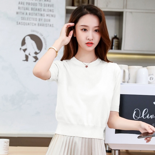 レディース トップス 半袖 サマーニット ショート丈 ラウンドネック 大人可愛い きれいめ シンプル 上品 かっこいい 個性的 クール モード系 主役級 存在感 無地 春 夏 10代 20代 30代 お姉さん 学生 学校 通学 デート お出かけ お揃い 双子 韓国 オルチャン コーデ 普段使い 着回し モテ トレンド 流行 インスタ映え 定番 着映え セクシー SM L ホワイト ブラック ピンク アプリコット 黒 オフホワイト