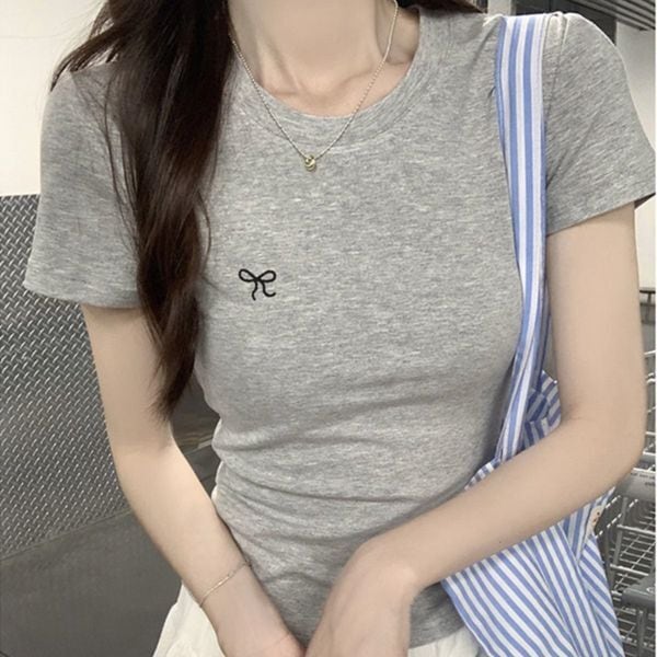 レディース トップス Tシャツ 半袖 ラウンドネック クルーネック フェミニン リボン 刺繡 かわいい 大人可愛い きれいめ カジュアル おしゃれ ガーリー ラブリー キュート ロマンティック 無地 春 夏 10代 20代 30代 40代 デート お出かけ ショッピング カフェ 楽ちん 体型カバー プチプラ 普段使い 着回し トレンド 流行 インスタ映え 定番 XS S M L XL 2XL 白 ホワイト グレー ピンク ベーシックカラー 大人カラー 春カラー