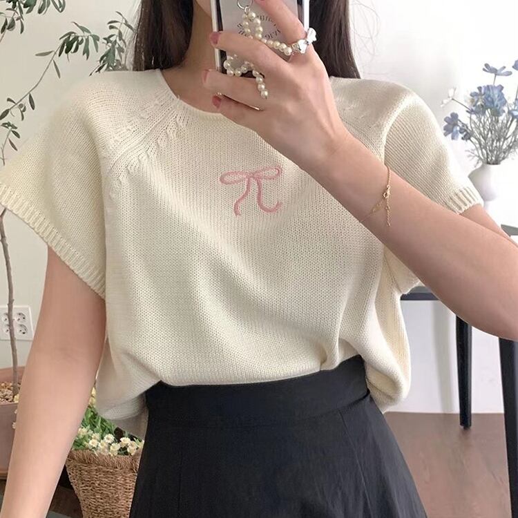 レディース トップス ニット サマーセーター サマーニット 半袖 ラウンドネック クルーネック フェミニン リボン 刺繡 かわいい 大人可愛い きれいめ カジュアル 上品 おしゃれ ガーリー ラブリー キュート ロマンティック 無地 春 夏 10代 20代 30代 40代 デート お出かけ ショッピング カフェ 楽ちん 体型カバー プチプラ 普段使い 着回し トレンド 流行 インスタ映え 定番 フリーサイズ 白 ホワイト 黒 ブラック ピンク ベーシックカラー 大人カラー 春カラー
