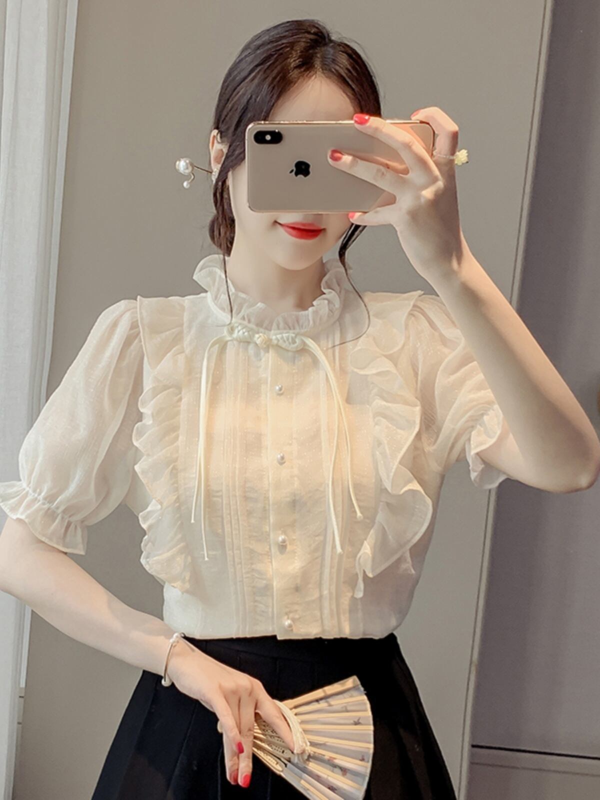 レディース トップス ブラウス 半袖 パフスリーブ ハイネック フェミニン フリル リボン シアー かわいい 大人可愛い きれいめ カジュアル 上品 おしゃれ ガーリー エレガント ラブリー キュート ロマンティック 無地 春 夏 10代 20代 30代 40代 デート お出かけ 旅行 ショッピング カフェ コーデ 楽ちん 体型カバー プチプラ 普段使い 着回し モテ 清楚 トレンド 流行 インスタ映え 定番 S M L XL 白 ホワイト クリーム