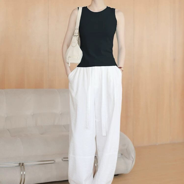 洗練された大人のベーシックスタイルを演出してくれる、リブノースリーブトップス。
