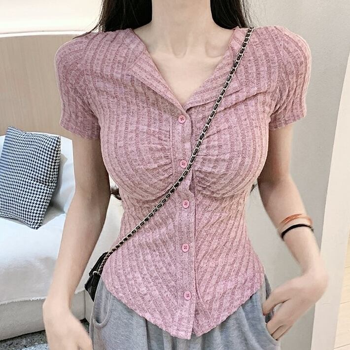 レディース トップス ニット セーター ニットソー 半袖 クルーネック タイト スリム 細身 フェミニン 前開き ボタン ヴィンテージ かわいい 大人可愛い きれいめ シンプル カジュアル 上品 おしゃれ かっこいい こなれ感 ラフ ガーリー クール モード系 エレガント モダン 主役級 存在感 ラブリー キュート 都会的 ラグジュアリー ロマンティック ナチュラル 無地 春 夏 発表会 冠婚葬祭 母の日 ハロウィン クリスマス バレンタイン 授業参観 大会 会議 MTG ミーティング 10代 20代 3