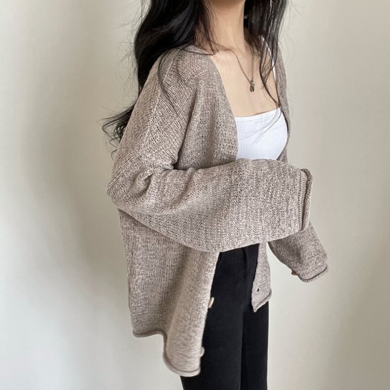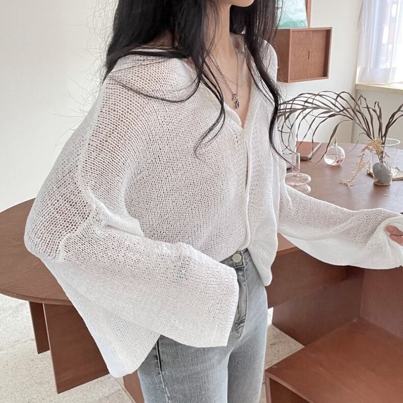 シアーな軽やかニットで涼し気な印象を纏う主役級の存在感を放つカーディガンです。
