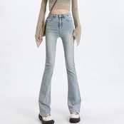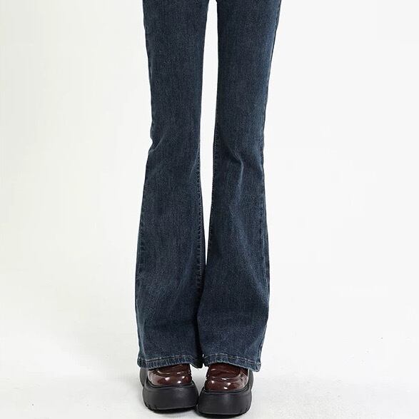 レディース パンツ ボトムス デニム ジーンズ Gパン ロングパンツ フレアパンツ デニムパンツ ロング セミフレア スリム 細身 ブーツカット ファスナー ポケット ハイウエスト ボタン アメカジ ウォッシュ ブルーデニム 大人可愛い きれいめ シンプル カジュアル 上品 おしゃれ かっこいい レトロ 無地 春 秋 冬 10代 20代 30代 40代 学生 デート お出かけ ショッピング 韓国 コーデ 美脚 脚長 普段使い 着回し XS S M L XL 小さいサイズ 大きいサイズ 黒 ブラック ブルー