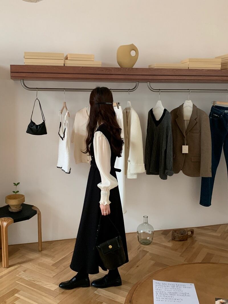 おしゃれなストリートスタイルにぴったりのロング丈ワンピースが登場しました!ラウンドネックとバイカラーのドッキングが魅力的で、かわいらしさと大人っぽさを同時に演出します。シンプルで上品なデザインなので、カジュアルからきれいめまで幅広いシーンで活躍します。