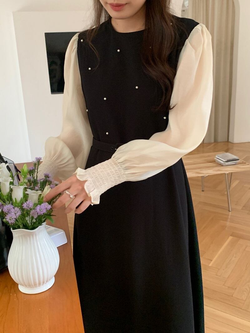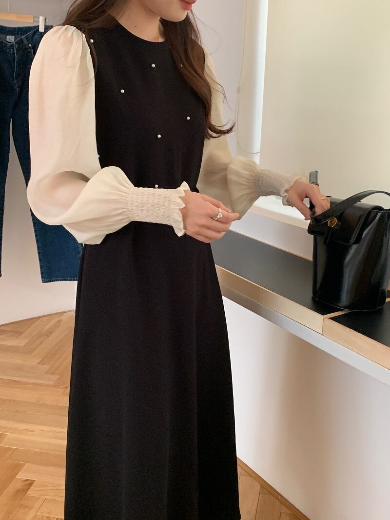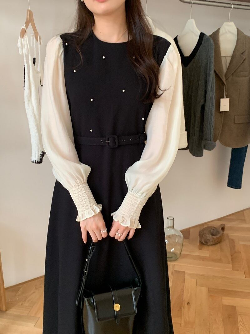 レディース ワンピース ロング 長袖 ラウンドネック ストリート バイカラー ドッキング かわいい 大人可愛い きれいめ シンプル カジュアル 上品 おしゃれ ガーリー ラブリー キュート ロマンティック 無地 オールシーズン 10代 20代 30代 40代 お出かけ ショッピング 体型カバー プチプラ 普段使い 着回し モテ 清楚 トレンド 流行 インスタ映え 定番 全方位映え 着映え フリーサイズ 黒 ブラック ベーシックカラー 大人カラー 春カラー 秋カラー