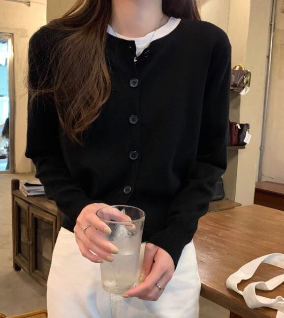 通勤や普段使いにも相性抜群な薄手のカーディガン。きれいめでシンプルなデザインが特徴です。長袖で春と秋・冬に最適なアウターとしておすすめ。