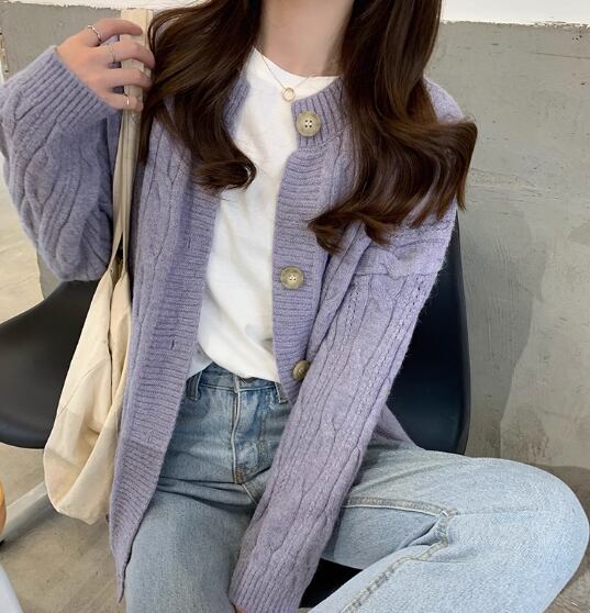 レディース トップス ジャケット ニット セーター カーディガン アウター 上着 羽織 前開き 長袖 ボリューム袖 襟なし スクープネック スリム ストレート ふわふわ ケーブルニット リブニット ボタン 中厚手 厚手 かわいい 大人可愛い カジュアル おしゃれ ラフ ガーリー ルーズ キュート ナチュラル 無地 秋 冬 10代 20代 30代 40代 お姉さん お呼ばれ オフィスカジュアル OL 学生 重ね着 体型カバー S M L 2XL ゆる グレー アプリコット 大人カラー 秋カラー パープル
