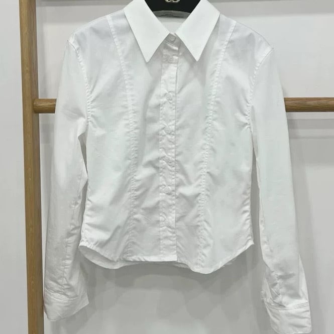 レディース トップス シャツ 前開き 長袖 襟付き ポロカラー スリム 細身 コンサバ ボタン きれいめ シンプル 上品 おしゃれ かっこいい エレガント フォーマル カレッジ風 学生風 ベーシック 無地 春 秋 冬 入学式 入園式 卒業式 卒園式 ママ 10代 20代 30代 40代 オフィス ビジネス OL 通勤 学生 学校 通学 お出かけ 公園 女子会 休日 ショッピング 重ね着 韓国 コーデ スタイル 普段使い 着回し レイヤード 定番 サイズ S M L カラー展開 白 ホワイト ブルー 青