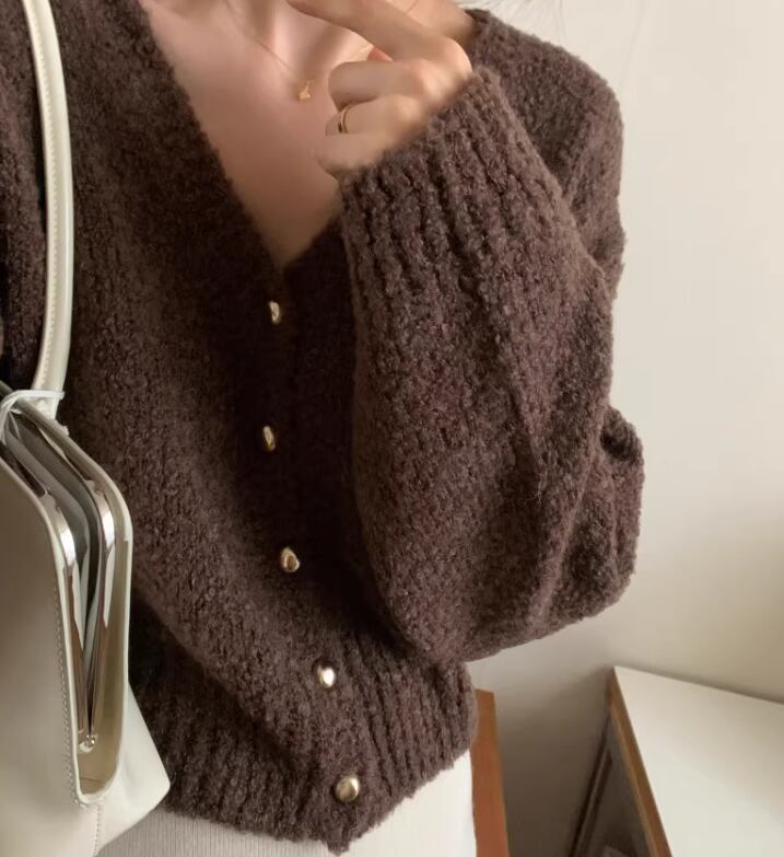 レディース トップス ジャケット ニット カーディガン アウター 上着 羽織 前開き 長袖 Vネック 襟なし スリム スマート もこもこ ふわふわ ふっくら ボタン かわいい 大人可愛い ラフ ガーリー ルーズ ロマンティック ナチュラル レトロ 無地 秋 冬 10代 20代 30代 40代 お姉さん オフィスカジュアル オフィス OL 通勤 学生 デート お出かけ 重ね着 暖かい 防寒 体型カバー 普段使い 着回し モテ ゆる フリーサイズ ワンサイズ 茶色 ブラウン オフホワイト 緑 グリーン