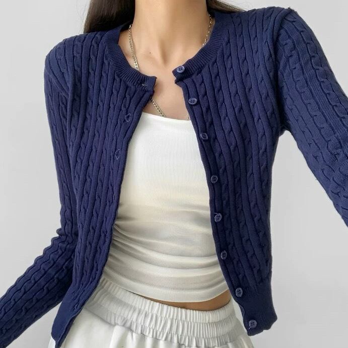 レディース トップス ニット カーディガン 上着 羽織 前開き ショート 長袖 萌袖 ラウンドネック スリム 細身 ハイウエスト ケーブルニット 伸縮性 コンサバ 大人可愛い きれいめ シンプル カジュアル 上品 おしゃれ かっこいい クール 抜け感 ベーシック 無地 秋 冬 ママ 10代 20代 30代 40代 お姉さん オフィス ビジネス OL 通勤 学生 デート お出かけ 休日 ショッピング 韓国 コーデ 普段使い 着回し S M 黒 ブラック グレー オフホワイト ネイビーブルー ベーシックカラー