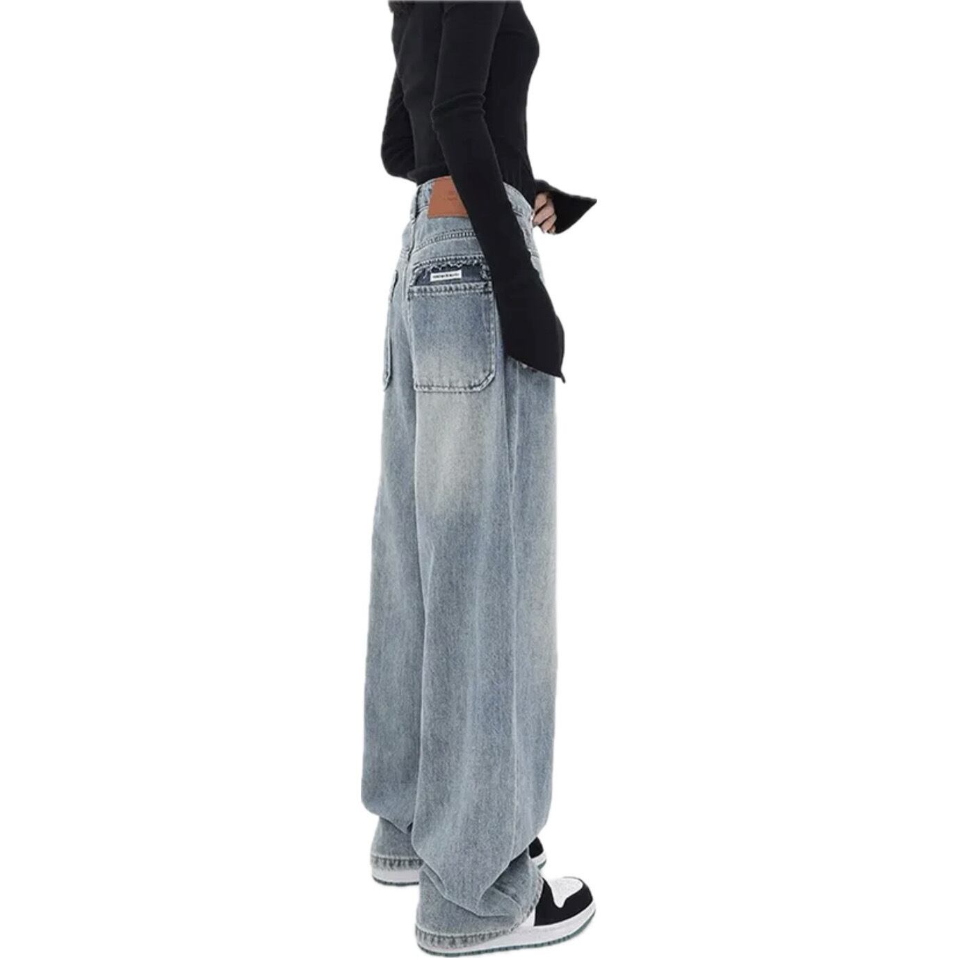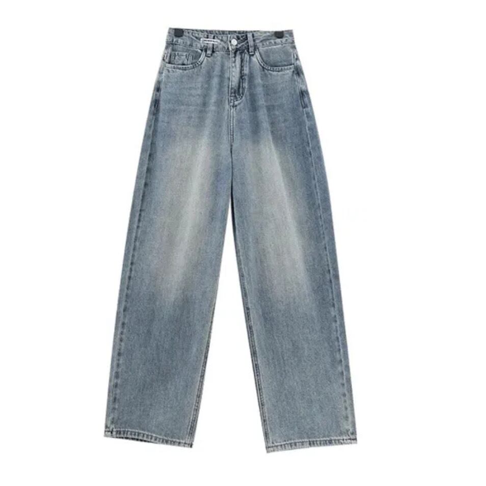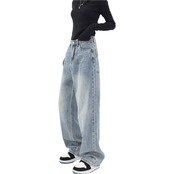 レディース パンツ ボトムス デニム ジーンズ Gパン ストレートパンツ ロングパンツ ワイドパンツ デニムパンツ ロング フルレングス ワイド ストレート ストリート ファスナー ポケット ハイウエスト ボタン アメカジ ウォッシュ ブルーデニム シンプル カジュアル おしゃれ レトロ ラフ ボーイッシュ ルーズ 無地 春 夏 秋 冬 シーズンレス 10代 20代 30代 40代 お出かけ ショッピング コーデ 体型カバー サイズ S M L XL 2XL 3XL 4XL 大きいサイズ ライトブルー 青