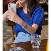 レディース トップス ケーブル サマーニット セーター 半袖 パフスリーブ Vネック 大人可愛い きれいめ シンプル カジュアル 上品 おしゃれ かっこいい こなれ感 主役級 都会的 春 夏 授業参観 大会 会議 MTG ミーティング 10代 20代 30代 40代 お姉さん お呼ばれ お食事 オフィスカジュアル オフィス ビジネス OL 通勤 学生 学校 通学 お出かけ パーティー イベント 女子会 ショッピング 発表会 コンサート ライブ カフェ フリーサイズ ワンサイズ ピンク ブルー グリーン