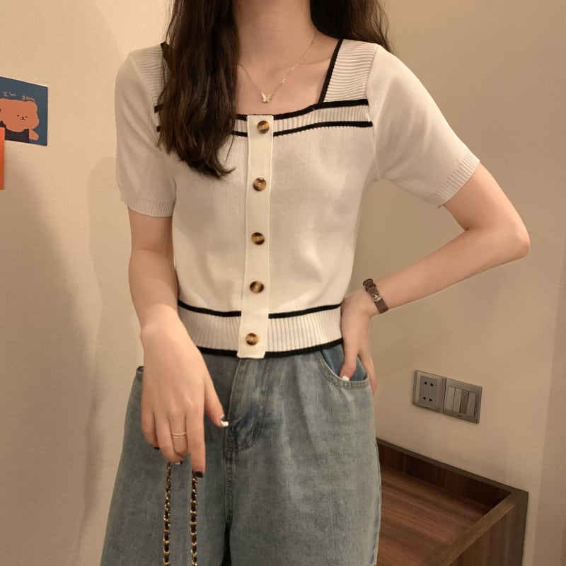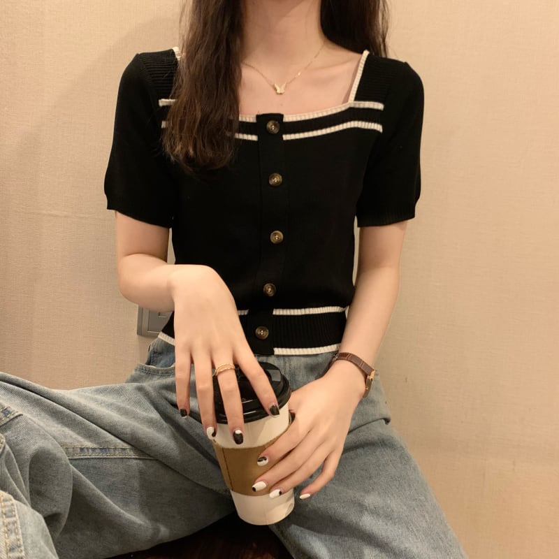 レディース トップス ニット セーター 半袖 スクエアネック かわいい ボタン ライン バイカラー 大人可愛い カジュアル 上品 おしゃれ かっこいい こなれ感 ラフ 個性的 主役級 存在感 抜け感 ロマンティック ナチュラル 春 夏 10代 20代 30代 40代 お姉さん お呼ばれ お食事 オフィスカジュアル オフィス ビジネス OL 通勤 学生 学校 通学 イベント リゾート 旅行 海 女子会 休日 バカンス ガーデン ショッピング 発表会 合コン フェス S M L XL ホワイト ブラック