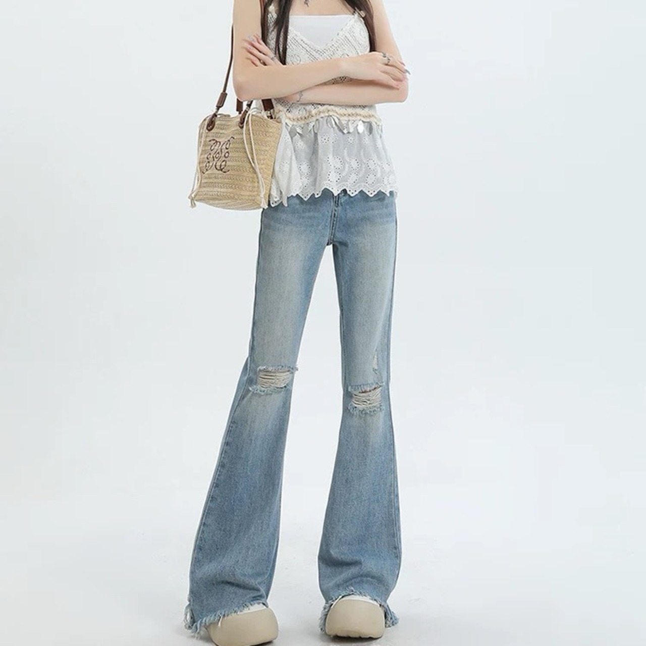レディース パンツ ボトムス デニム ジーンズ Gパン ロングパンツ デニムパンツ フレアパンツ ロング フルレングス フレア スリム 裾ワイド ブーツカット ファスナー ポケット ハイウエスト ボタン アメカジ ダメージ ウォッシュ カジュアル おしゃれ 個性的 抜け感 クラシカル アメリカン アクティブ ワイルド 無地 春 夏 秋 冬 10代 20代 30代 40代 お出かけ ショッピング 韓国 コーデ 美脚 脚長 普段使い 着回し XS S M L XL 2XL 小さいサイズ 大きいサイズ ブルー