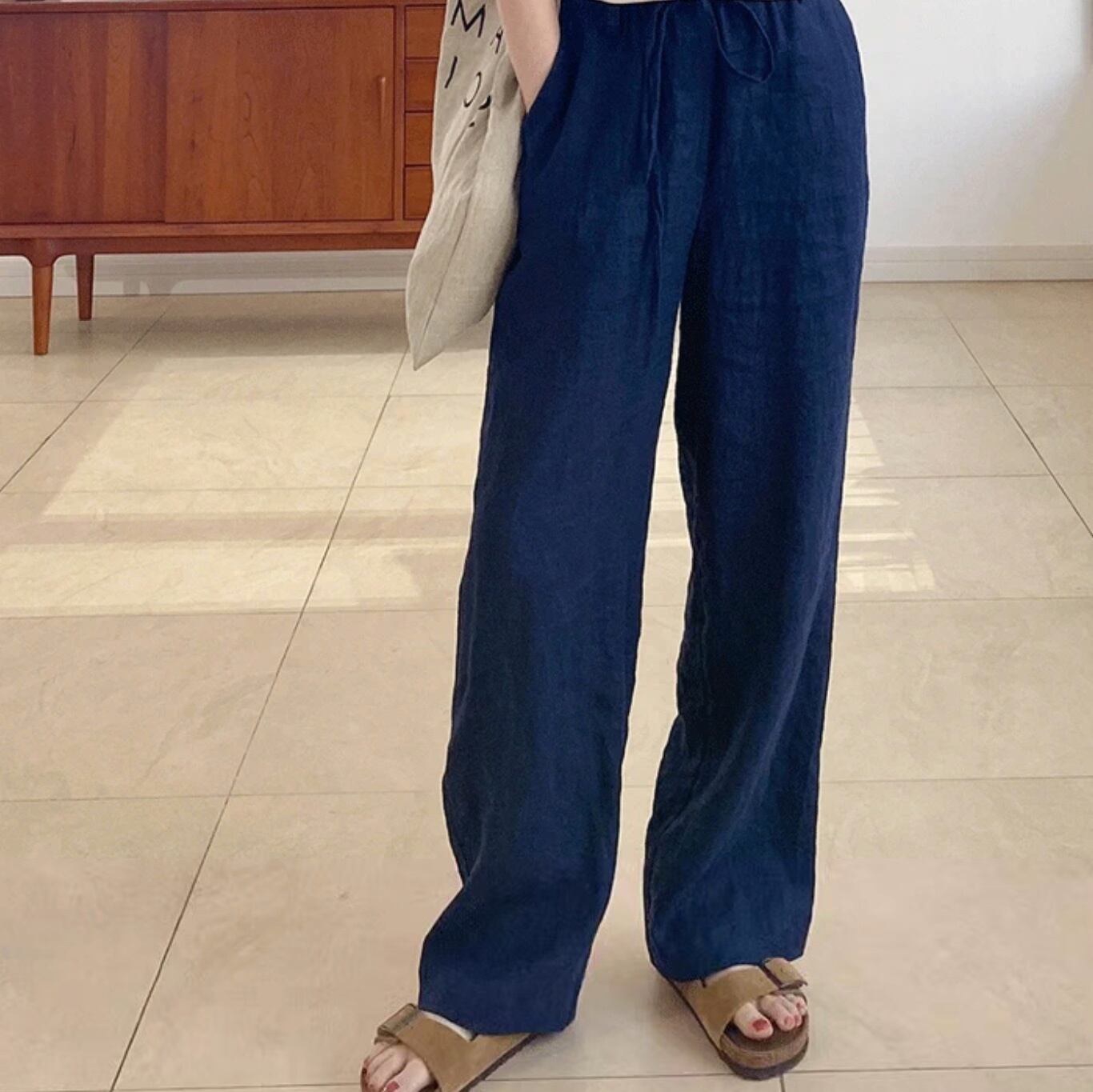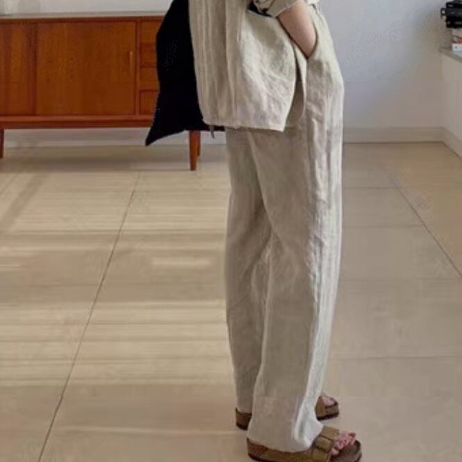 休日の夏コーデにぴったり、リネン素材のストレートパンツ!