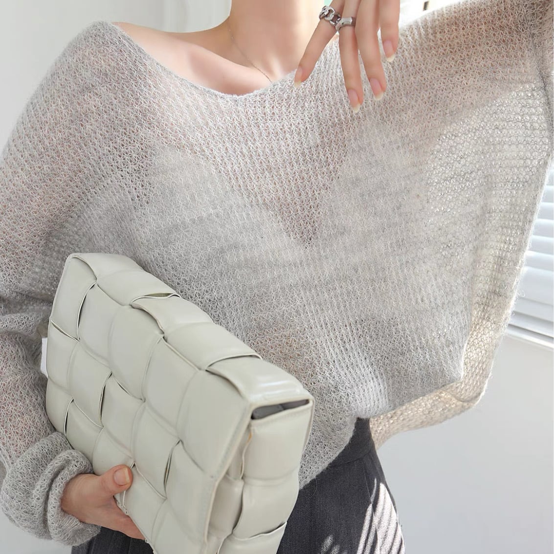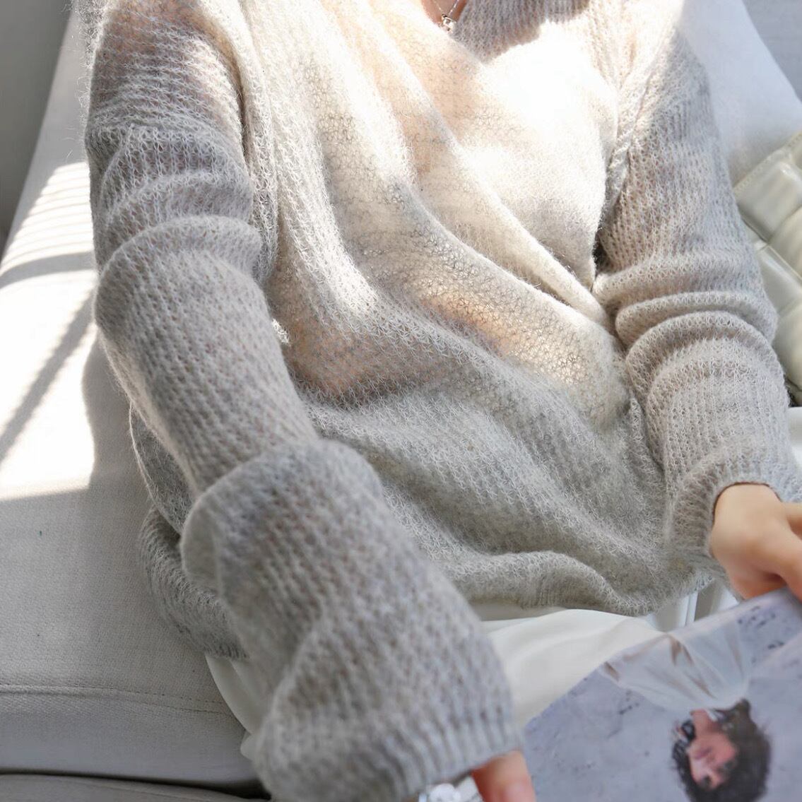 レディース トップス ニット セーター ざっくりニット 長袖 萌袖 Vネック フェミニン 透け感 薄手 大人可愛い きれいめ シンプル カジュアル 上品 おしゃれ こなれ感 ラフ ルーズ 抜け感 ロマンティック ナチュラル 無地 春 秋 ママ 10代 20代 30代 40代 お姉さん デート お出かけ 公園 女子会 休日 ショッピング カフェ 重ね着 韓国 オルチャン コーデ 楽ちん 体型カバー 普段使い 着回し レイヤード モテ サイズ展開 S M L XL ゆったり ゆる グレー 灰色 アプリコット