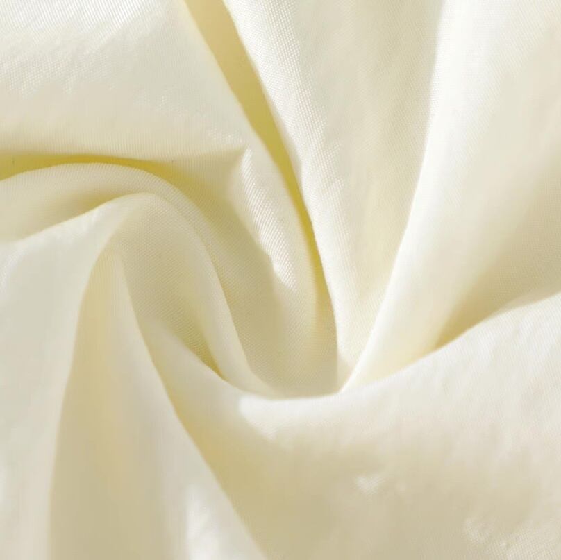 シンプルながらも、プリーツやタックのディテールが動きのあるデザインに。