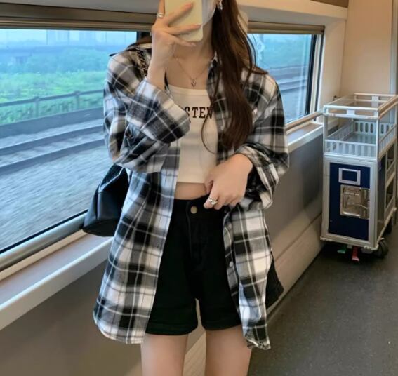 レディース トップス シャツ ブラウス 羽織 前開き 長袖 襟付き ポロカラー ストレート ボタン 大人可愛い きれいめ シンプル カジュアル おしゃれ かっこいい レトロ ラフ ルーズ カレッジ風 ベーシック アメリカン ナチュラル チェック 格子柄 秋 冬 ロングシーズン 10代 20代 30代 40代 お姉さん オフィスカジュアル OL 学生 お出かけ 休日 重ね着 体型カバー 普段使い 着回し ゆったり フリーサイズ ワンサイズ 白 ホワイト 黒 ブラック ベーシックカラー 大人カラー 秋カラー