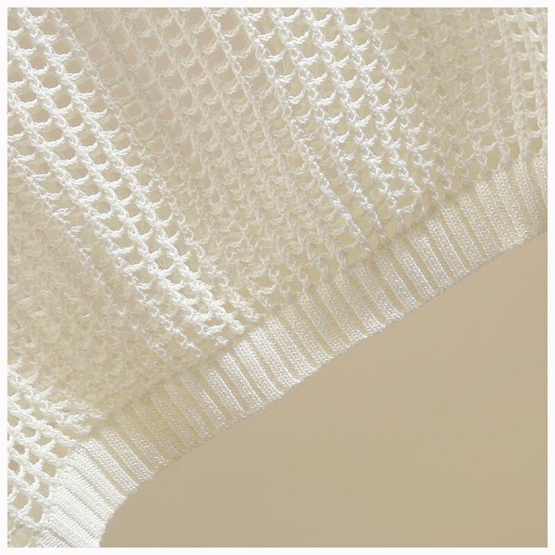 華やかなメッシュデザインが魅力のレディースニットセーター。シースルーな素材が大人可愛い印象を与え、ラウンドネックで上品な装いを演出します。シンプルなデザインながら存在感たっぷりで、インナー次第でアレンジ自在で春から冬までロングシーズン活躍するアイテムです。