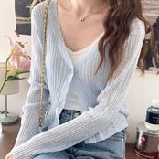 レディース トップス カーディガン サマーニット 羽織 前開き 長袖 Vネック フェミニン 透け感 シースルー 薄手 かわいい 大人可愛い きれいめ シンプル カジュアル 上品 おしゃれ こなれ感 ガーリー 抜け感 ラブリー キュート ベーシック ナチュラル 無地 春 秋 お姉さん お呼ばれ お食事 デート お出かけ 旅行 休日 美術館 重ね着 普段使い 着回し レイヤード 定番 フリーサイズ ワンサイズ 白 ホワイト 黒 ブラック 紫 黄色 イエロー パステル 緑 グリーン ベーシックカラー パープル