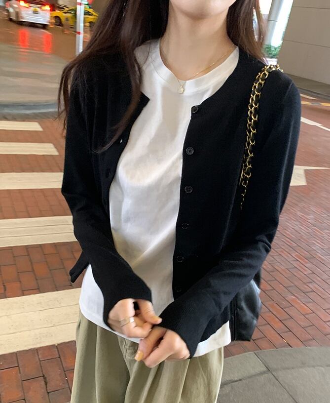 肌寒い時期の羽織や冷房対策、日焼け対策などオールシーズン活躍する薄手のニットカーディガン。シンプルでありながら女性らしくフェミニンな印象を与えてくれます。首元にリブを施し伸縮性抜群です。3カラーから選べ、お手持ちのワードローブと加えてコーデの幅が広がります。
