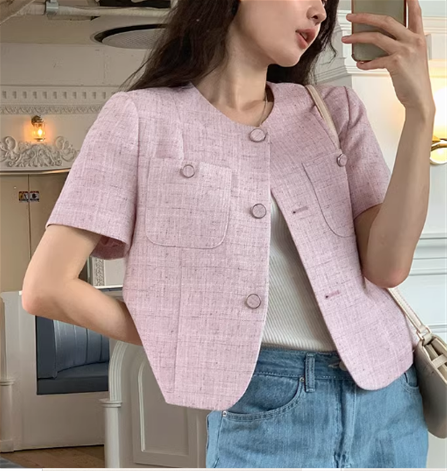 レディース トップス ジャケット 半袖 ノーカラージャケット 大人可愛い きれいめ 上品 おしゃれ エレガント 主役級 存在感 無地 春 夏 発表会 授業参観 ホテル 10代 20代 30代 40代 お姉さん お呼ばれ お食事 オフィスカジュアル オフィス ビジネス OL 通勤 学生 学校 通学 デート お出かけ 女子会 休日 重ね着 お揃い 双子 韓国 オルチャン コーデ 普段使い 着回し モテ 清楚 トレンド 流行 インスタ映え 定番 着映え ピンク ブルー 青 水色