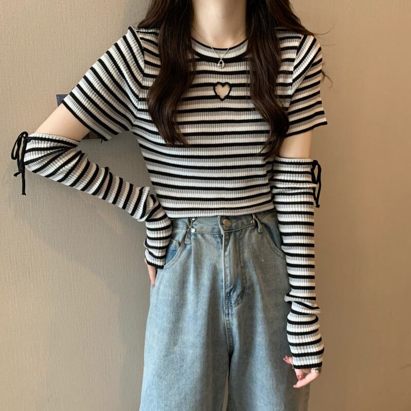 レディース トップス プルオーバー アームウォーマー アームウォーマー付き セット ショート ショート丈 半袖 ラウンドネック スリムフィット リブ レースアップ カットアウト カットワーク かわいい 大人可愛い カジュアル おしゃれ こなれ感 ラフ ガーリー 主役級 存在感 抜け感 ラブリー キュート ロマンティック ボーダー 春 秋 10代 20代 デート お出かけ イベント 女子会 休日 ショッピング カフェ 体型カバー 普段使い 着回し 着映え S M L ブラック ブルー イエロー