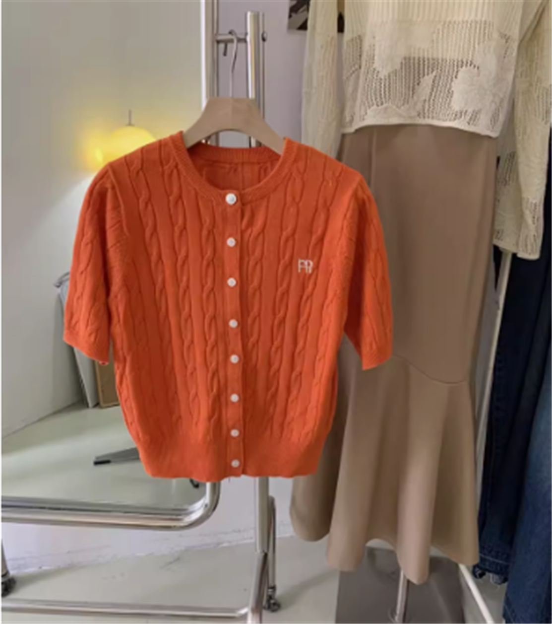 レディース トップス カーディガン 羽織 ワンポイント 半袖 ラウンドネック タイト 前開き 大人可愛い きれいめ シンプル 上品 おしゃれ 存在感 無地 春 夏 10代 20代 30代 40代 お姉さん 学生 学校 通学 デート お出かけ 旅行 レストラン 女子会 休日 カフェ お揃い 双子 韓国 オルチャン コーデ 着回し トレンド インスタ映え 定番 着映え 白 ホワイト ブルー ピンク ネイビー ホワイト グレー オレンジ