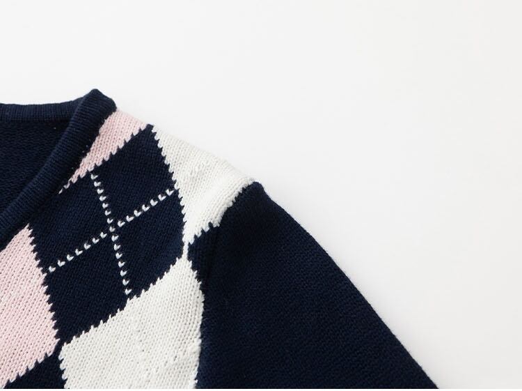 レトロなアーガイル柄が魅力のVネックニットカーディガン。女性らしさと大人可愛さを兼ね備えた一枚で、きれいめなコーディネートにぴったりです。シンプルながらもこなれ感があるデザインで、カジュアルからおしゃれスタイルまで幅広くお楽しみいただけます。