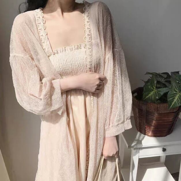 甘め 休日スタイル 夏コーデ レディース トップス カーディガン ロング 長袖 フェミニン レース 刺繍 フリル 透け感 シースルー かわいい きれいめ シンプル ラブリー キュート ベーシック アメリカン プレッピー ロマンティック ナチュラル 花柄 フラワー 夏 デート お出かけ イベント リゾート 旅行 ビーチ 休日 バカンス カフェ 重ね着 体型カバー 普段使い 着回し レイヤード トレンド 流行 インスタ映え 全方位映え 着映え ゆったり ゆる フリーサイズ ワンサイズ 白 ホワイト クリーム