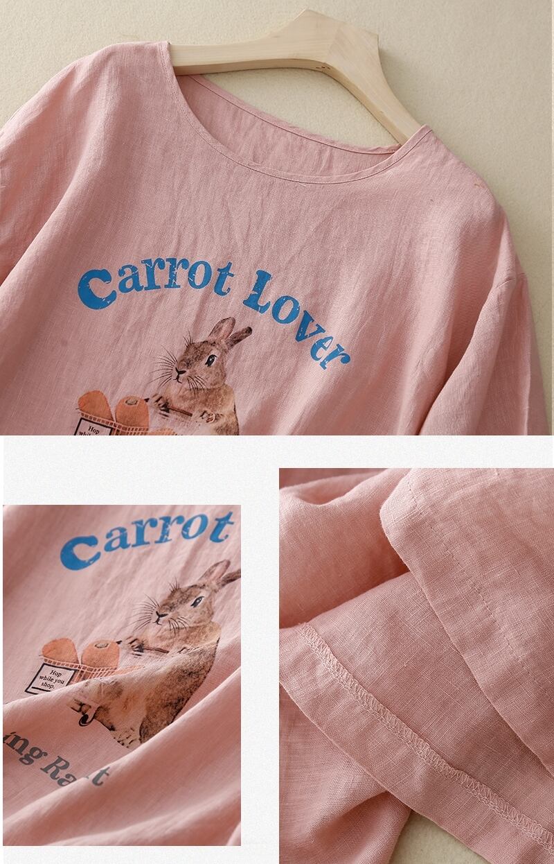 スウィートでキュートなウサギプリントTシャツが新登場!ラウンドネックで着心地も抜群。カジュアルなデイリールックからオフィスコーデまで、幅広いシーンで活躍すること間違いなし!洗練された雰囲気が欲しい方にもコーデに取り入れてラフな抜け感をプラスすることができます。