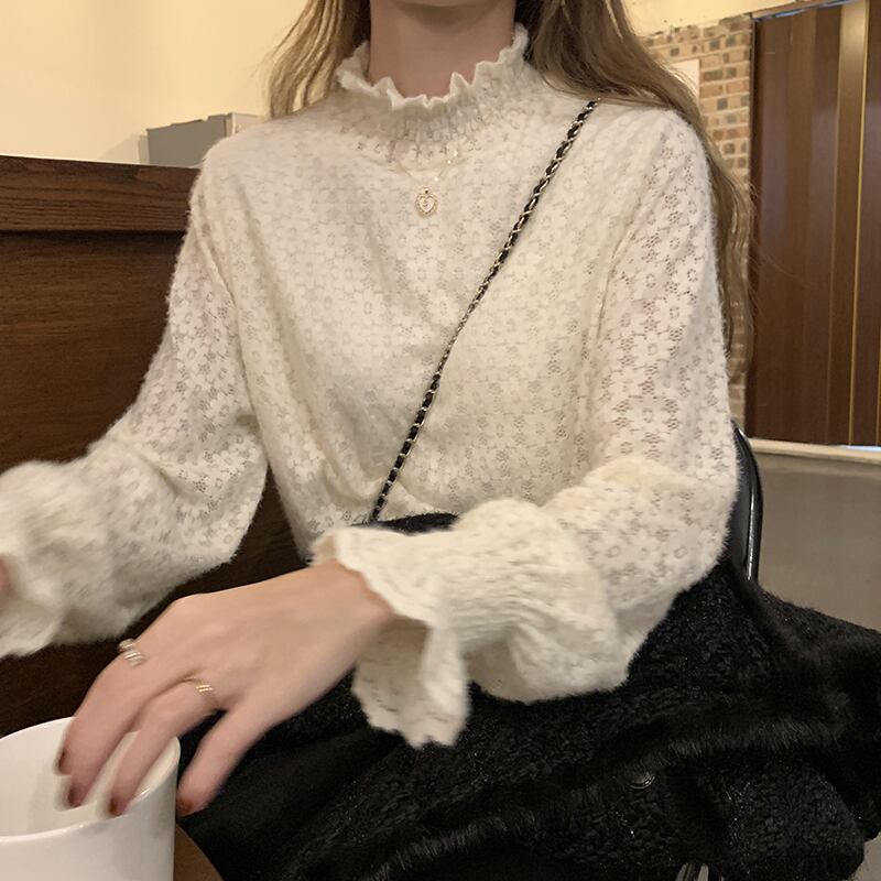 甘め レディース トップス ニット セーター プルオーバー 長袖 ボリューム袖 フリル袖 ハイネック ストレート レース フリル かわいい 大人可愛い シンプル カジュアル 上品 おしゃれ こなれ感 ガーリー 主役級 存在感 抜け感 ロマンティック ナチュラル 花柄 フラワー 10代 20代 デート お出かけ イベント 旅行 女子会 休日 ショッピング カフェ 美術館 暖かい 体型カバー 普段使い 着回し モテ 清楚 インスタ映え 定番 全方位映え 着映え フリーサイズ アプリコット