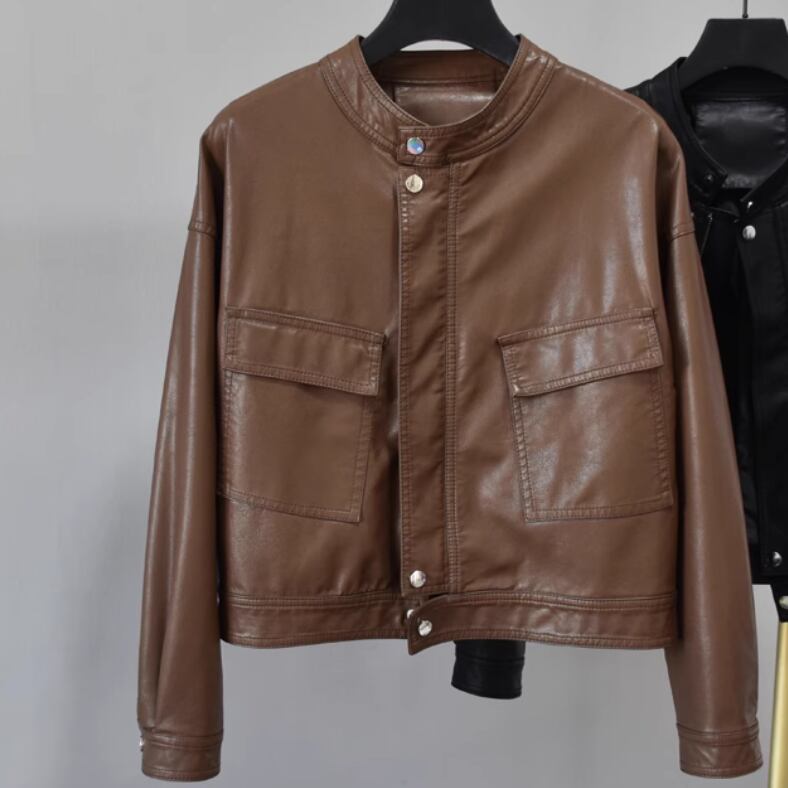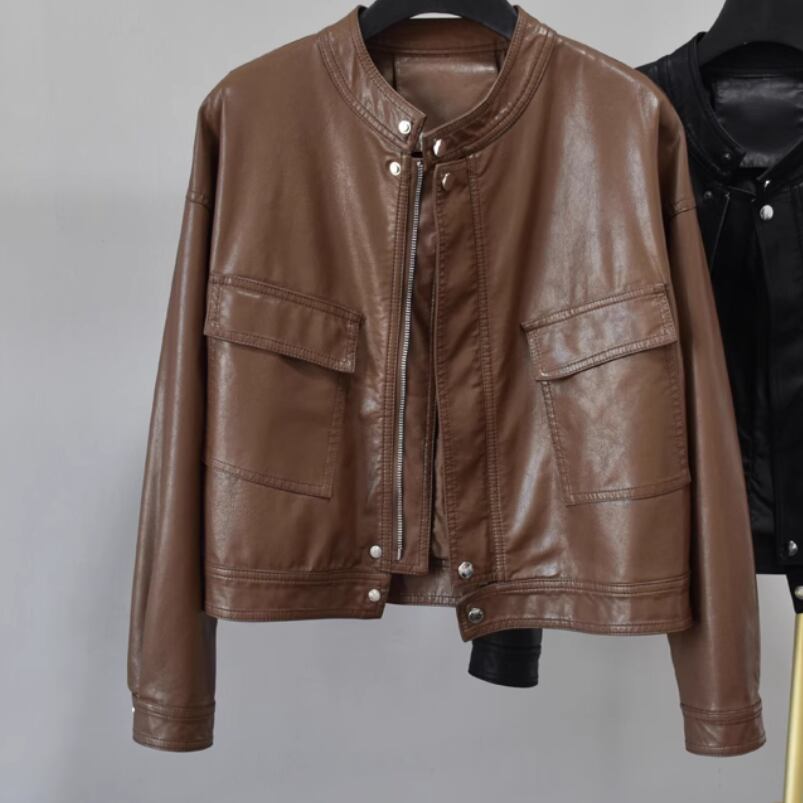 レディース ジャケット アウター 上着 前開き レザージャケット ミニ ショート 長袖 ファスナー ポケット レザー 大人可愛い きれいめ シンプル カジュアル 上品 おしゃれ かっこいい レトロ エキゾチック こなれ感 ラフ メンズライク ボーイッシュ 個性的 クール モダン 主役級 存在感 抜け感 都会的 ベーシック アメリカン アクティブ ワイルド 無地 秋 デート お出かけ アウトドア 旅行 公園 休日 コーデ 普段使い モテ インスタ映え 定番 M L XL ブラック ブラウン オフホワイト