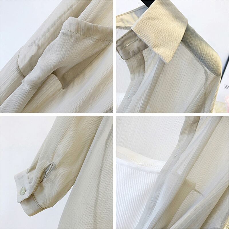 トップス シャツ 長袖 襟付き 前開き ボタン ミディアム丈 透け感 シースルー 胸ポケット かわいい 大人可愛い きれいめ シンプル 上品 おしゃれ かっこいい カジュアル こなれ感 個性的 主役級 存在感 抜け感 秋 ベーシック ナチュラル クール キュート メンズライク エレガント 無地 レディース 女性用 ママ OL 通勤 学生 通学 デート お出かけ お泊まり 女子会 旅行 アウトドア 休日 カフェ ショッピング コンパ レストラン 普段使い デイリー 着回し レイヤード 重ね着 ワンサイズ