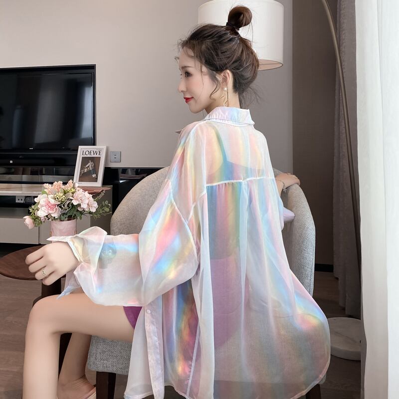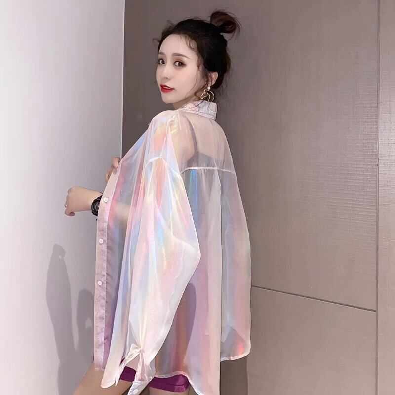 トップス シャツ 長袖 襟付き 前開き ボタン ミディアム丈 透け感 シースルー 光沢 かわいい 大人可愛い きれいめ シンプル 上品 おしゃれ かっこいい カジュアル こなれ感 個性的 主役級 存在感 抜け感 秋 ベーシック ナチュラル クール キュート メンズライク エレガント 無地 レディース 女性用 ママ OL 通勤 学生 通学 デート お出かけ お泊まり 女子会 旅行 アウトドア 休日 カフェ ショッピング コンパ レストラン 普段使い デイリー 着回し レイヤード 重ね着 S M L