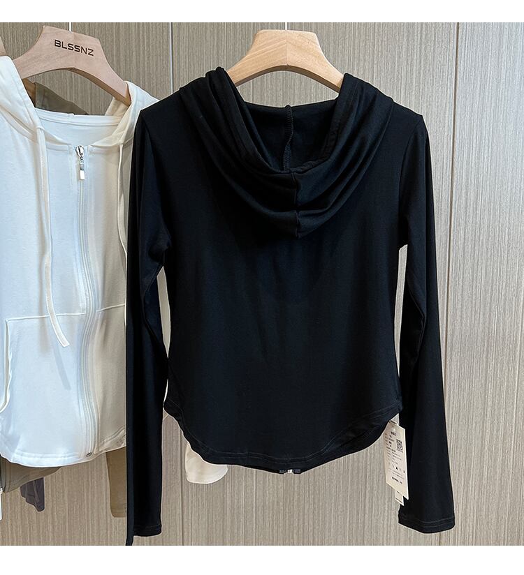 このパーカーは、ラウンドネックと前開きファスナーが特徴の、秋のスタイルにぴったりなアイテムです。