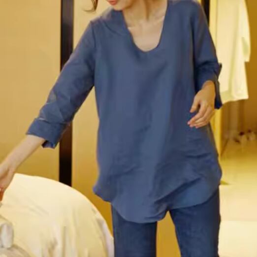 レディース トップス シャツ プルオーバー 7分袖 Vネック 襟なし ワイド 薄手 リネン コットン かわいい 大人可愛い きれいめ シンプル カジュアル 上品 おしゃれ かっこいい レトロ こなれ感 ガーリー ルーズ 個性的 クール モダン 主役級 存在感 とろみ感 抜け感 ラブリー キュート ベーシック アクティブ ナチュラル 無地 春 秋 お出かけ リゾート 旅行 休日 ショッピング お花見 カフェ コーデ 楽ちん 体型カバー 普段使い S M L XL ゆったり ゆる ホワイト ネイビーブルー