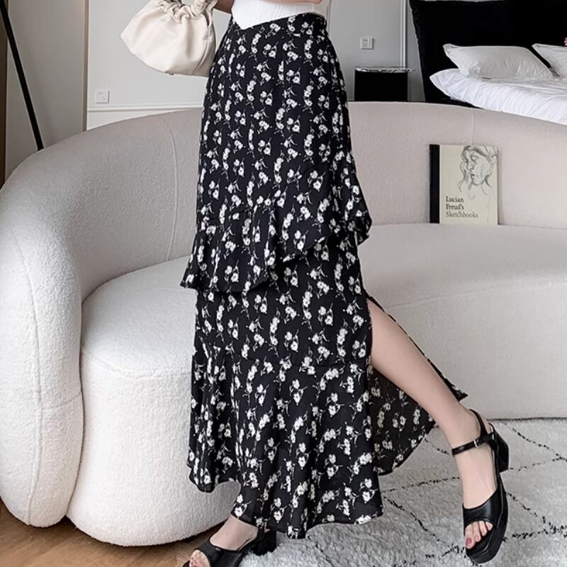レディース スカート ロングスカート シフォンスカート ロング フェミニン シフォン フリル スリット サイドスリット 薄手 かわいい 大人可愛い きれいめ シンプル カジュアル 上品 おしゃれ レトロ こなれ感 ラフ ガーリー ルーズ 個性的 エレガント モダン 主役級 存在感 とろみ感 抜け感 ラブリー キュート ロマンティック 花柄 フラワー デート お出かけ リゾート 休日 バカンス ショッピング 合コン コンパ コーデ 美脚 脚長 普段使い モテ インスタ映え 着映え S M L XL ゆる