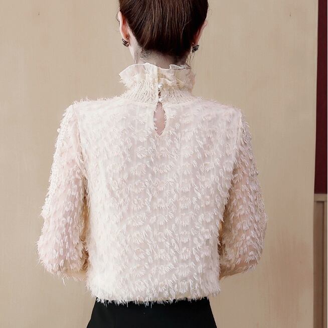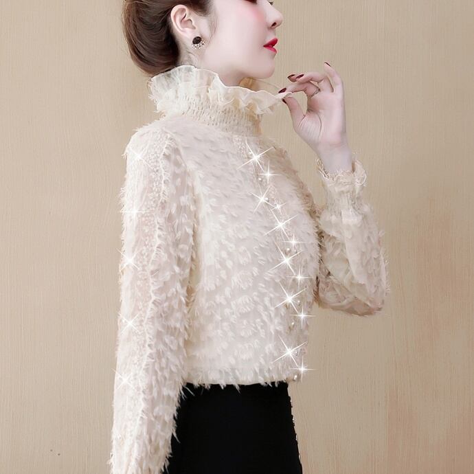 トップス ブラウス 長袖 ハイネック ミディアム丈 パール 刺繡 フリル かわいい 大人可愛い きれいめ シンプル 上品 おしゃれ かっこいい カジュアル こなれ感 個性的 主役級 存在感 抜け感 秋 冬 ベーシック ナチュラル キュート エレガント フォーマル ガーリー フェミニン 清楚 無地 レディース 女性用 OL 通勤 オフィス 学生 通学 デート お出かけ お泊まり 女子会 旅行 休日 カフェ ショッピング コンパ レストラン イベント 普段使い デイリー 着回し S M L XL 2XL
