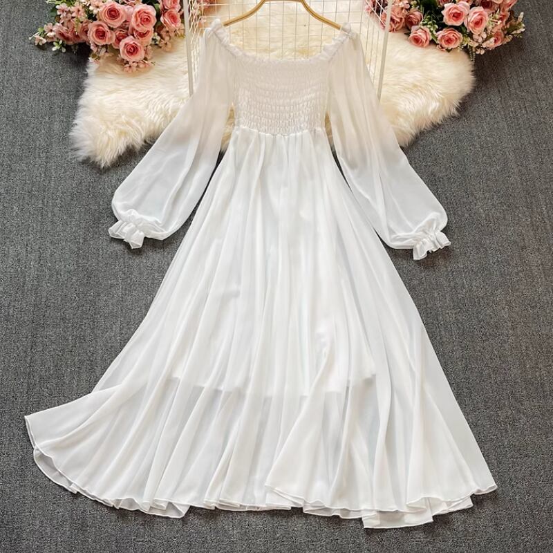 レディース スカート ワンピース プルオーバー ドレス ロングスカート ロング 長袖 スクエアネック Aライン フェミニン シフォン ハイウエスト 透け感 シースルー 薄手 かわいい 大人可愛い きれいめ シンプル カジュアル 上品 おしゃれ レトロ こなれ感 ラフ ガーリー ルーズ 個性的 エレガント モダン 主役級 存在感 とろみ感 抜け感 ラブリー キュート ロマンティック ナチュラル 無地 デート お出かけ リゾート 休日 バカンス コーデ 美脚 脚長 モテ 清楚 ゆる フリーサイズ ホワイト